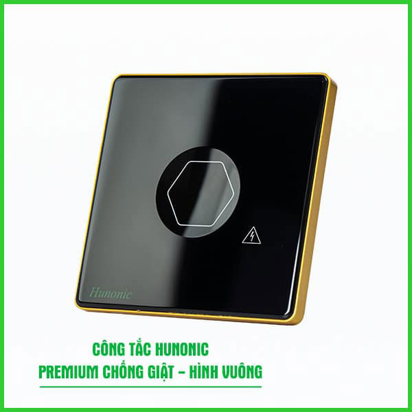 Công Tắc Hunonic Premium Hình Chữ Nhật Viền Vàng
